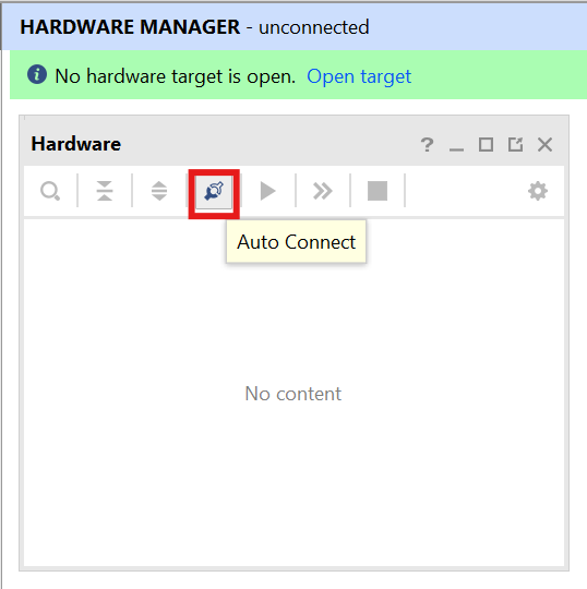 Click on “Open Hardware Manager” and then select “auto connect”.