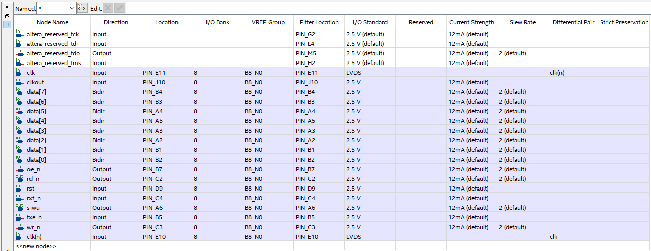 Copy the following pin configurations in your pin planner and close the pin planner.