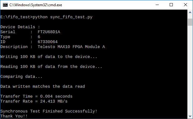 To check this, copy the following python code in text editor and save it as ‘sync_fifo_test.py’. Download and install the ‘ftd2xx’ Python library.