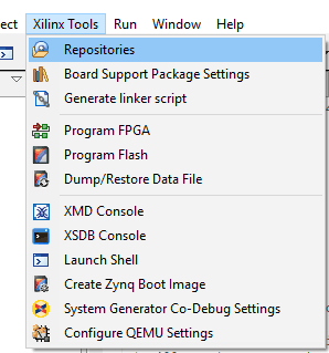 Step 2: In SDK, go to Xilinx Tools -> Repositories.