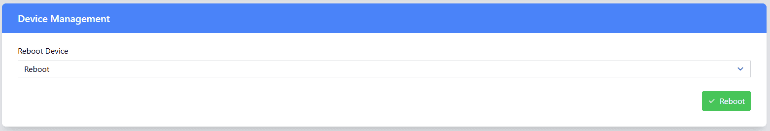 - From the web Interface: Click Reboot on the Device settings page under the Device Management section.