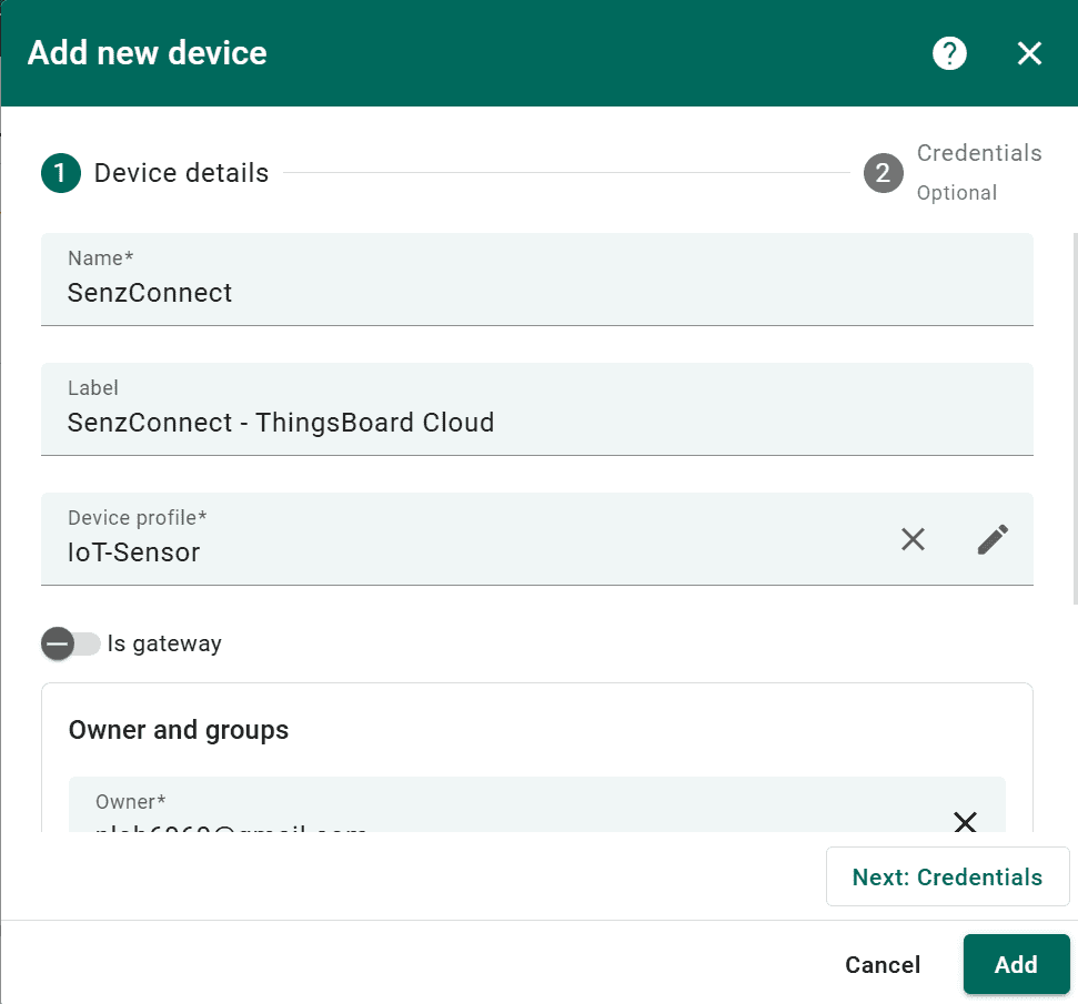 This guide walks you through the steps to connect your SenzConnect module to ThingsBoard Cloud and start publishing real-time sensor data using MQTT.