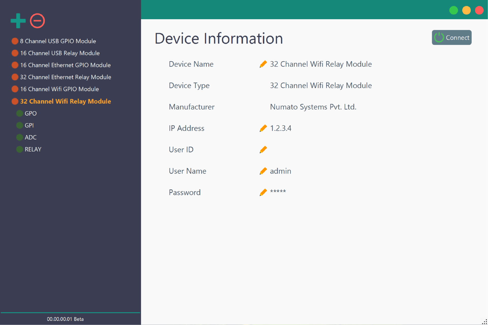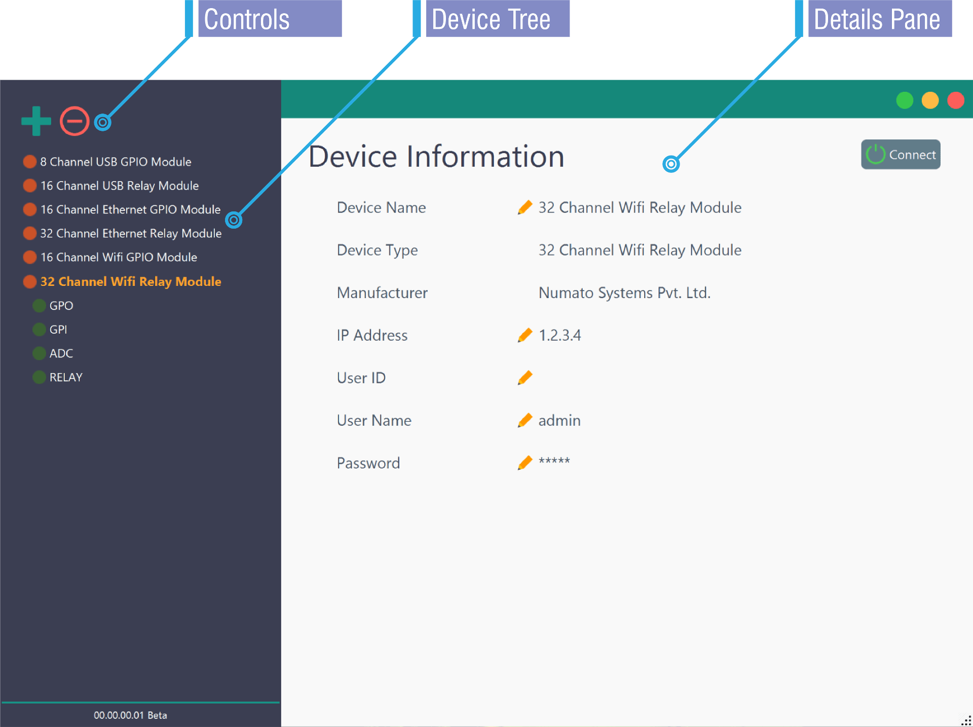 3. Once the device is added, click on the device and again click the “Connect” button on the “Device Information” pane.