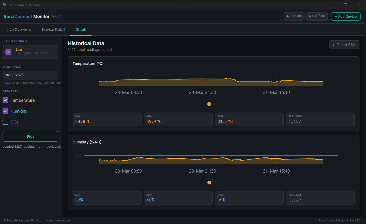 Select the device(s) of interest, date range, and data type, then click “Plot” to generate the graph.