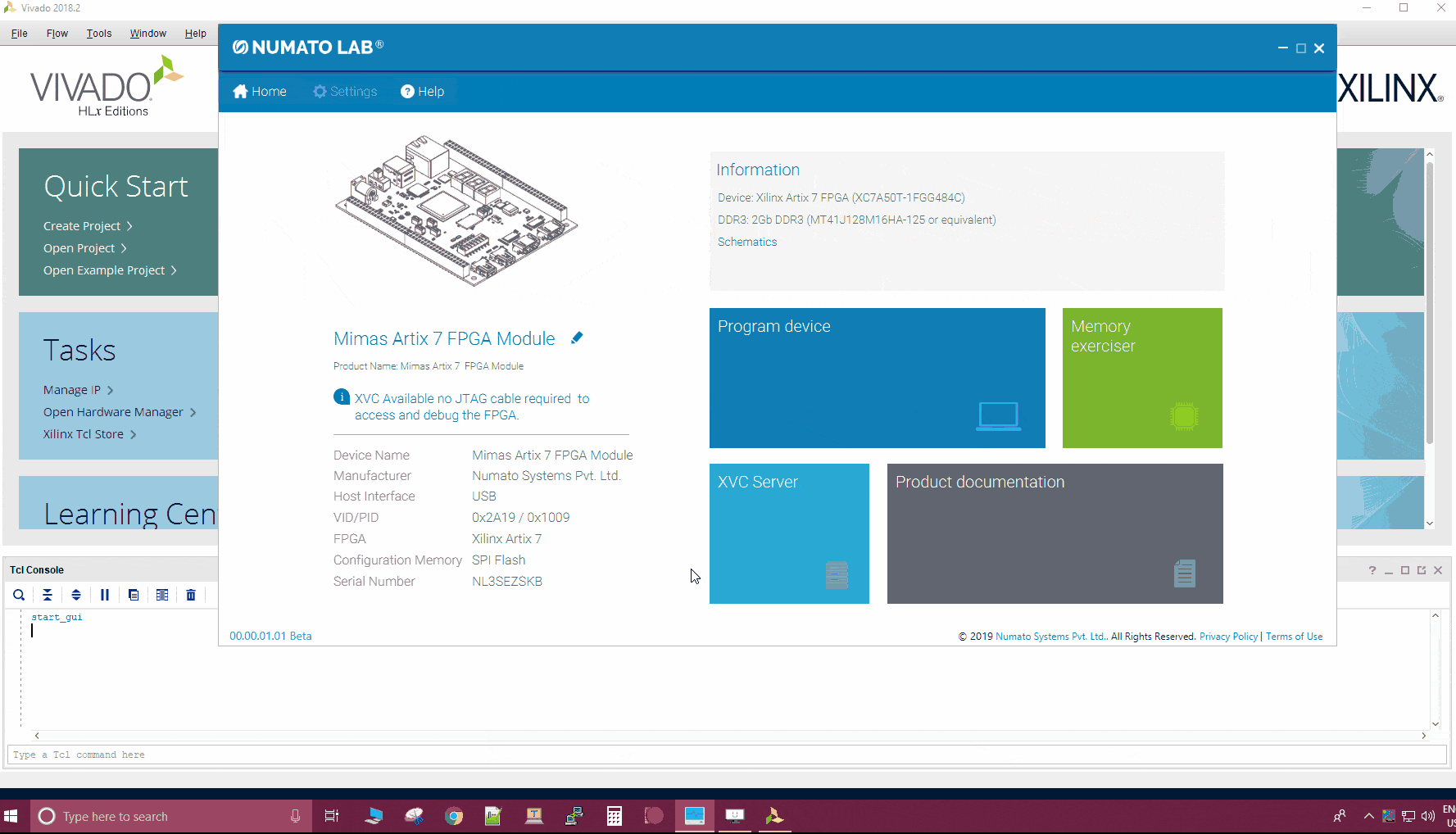 Xilinx Virtual cable (XVC) is a TCP/IP based protocol which emulates JTAG protocol and acts like a JTAG cable over network. Xilinx Virtual Cable provides a way to access JTAG chain on the target FPGA board and debug the target without the need of a physical cable.