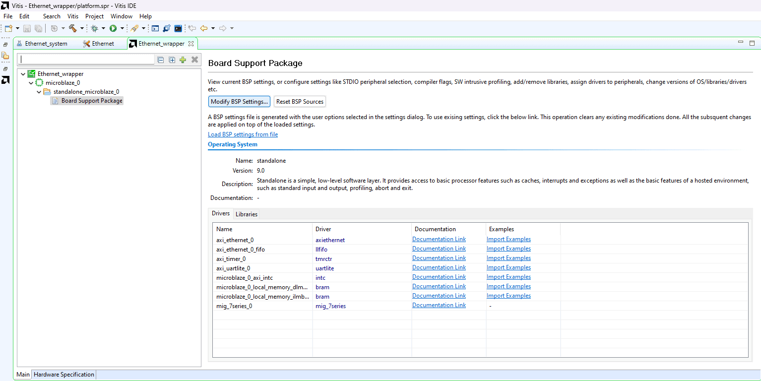 Select Board Support Package and click on Modify BSP Settings option.