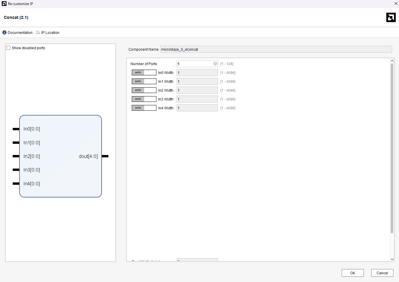 Customize the Concat IP block as shown below.