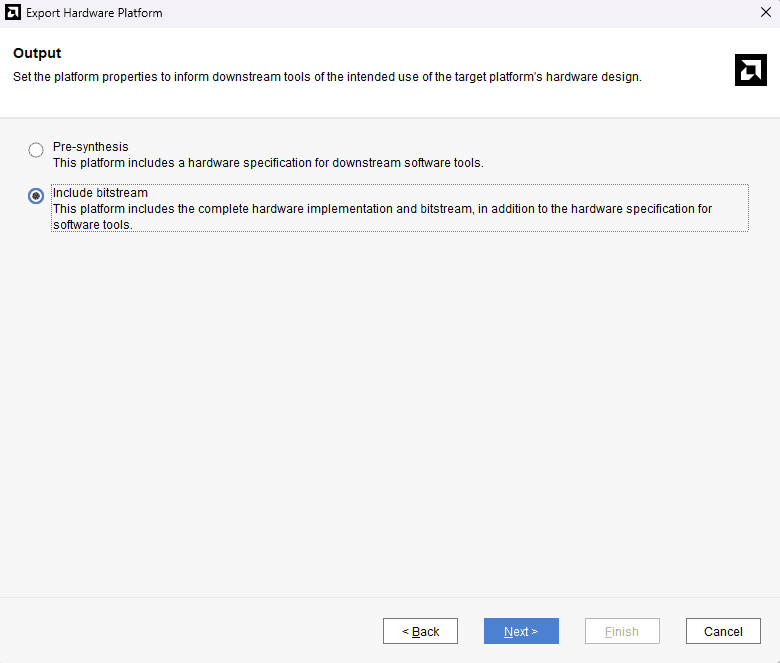 Select the “include bitstream” checkbox and click Next.