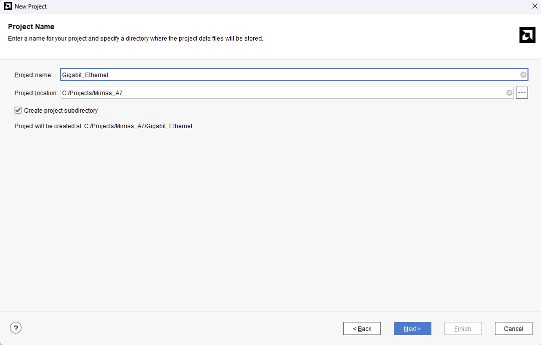 Click Finish to complete creating a new project. Vivado will create a new project with the selected settings.