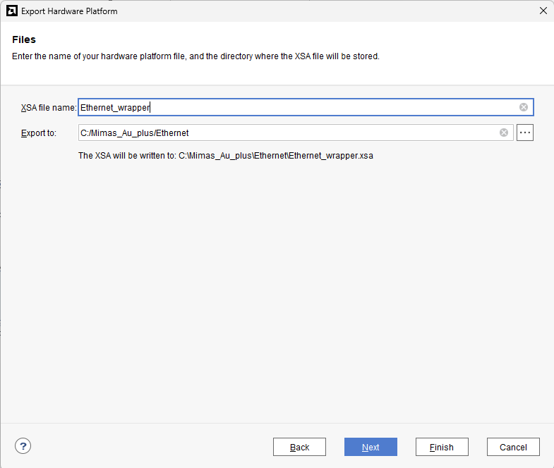Provide the XSA file name and save it at a suitable location. Click Next and click Finish in the next dialog box.