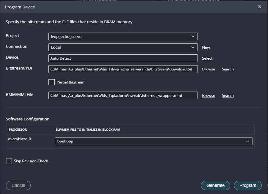 Once the “Program Device” window opens give the path for .bit and .mmi files .