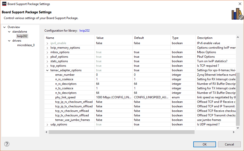 Select “phy_link_speed” in temac_adapter_options as “CONFIG_LINKSPEED1000”.