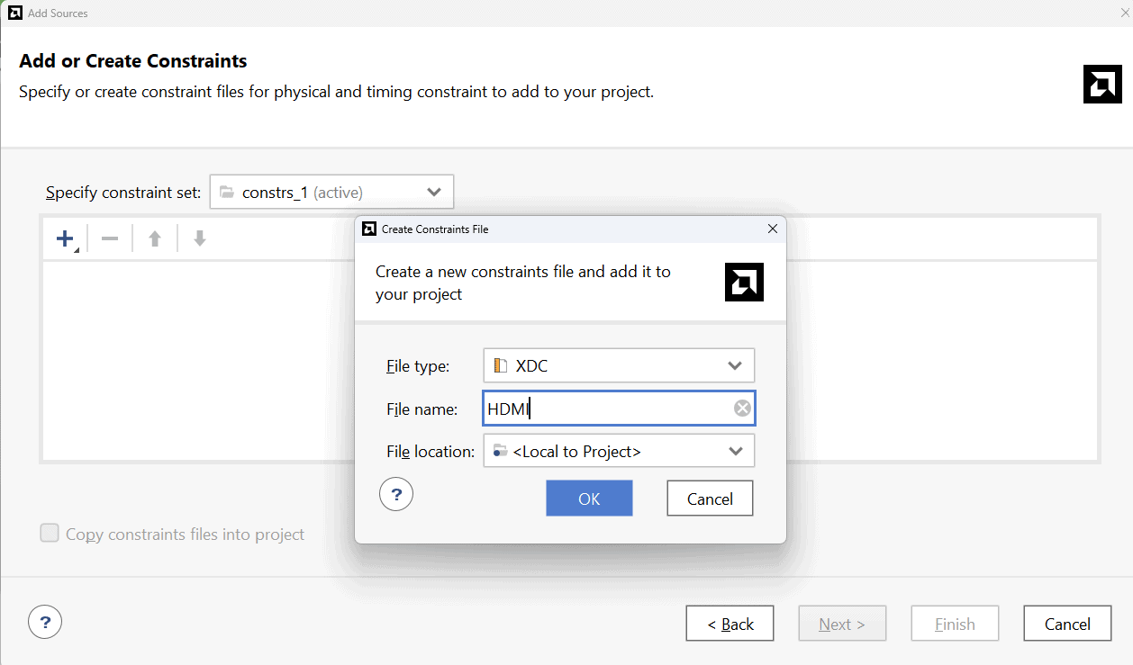 In Sources tab of Vivado, Right-Click on ‘Constraints’ and click ‘Add Sources’.