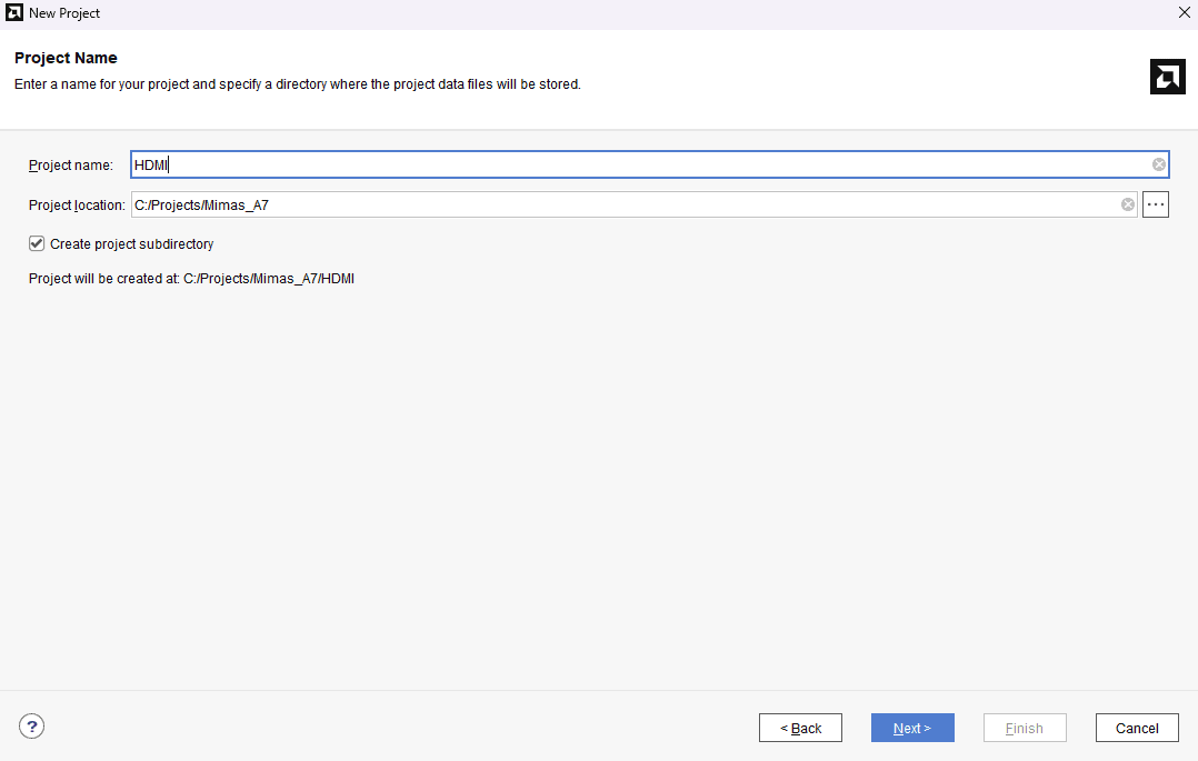 Open Vivado Design Suite, go to File->New->Project. The “New Project” window will open and click “Next” in the New Project wizard.
