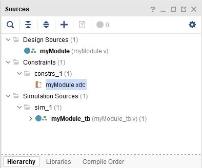 3. The XDC file is now created and is available in the Sources –> Constraints. Double click on it to open.
