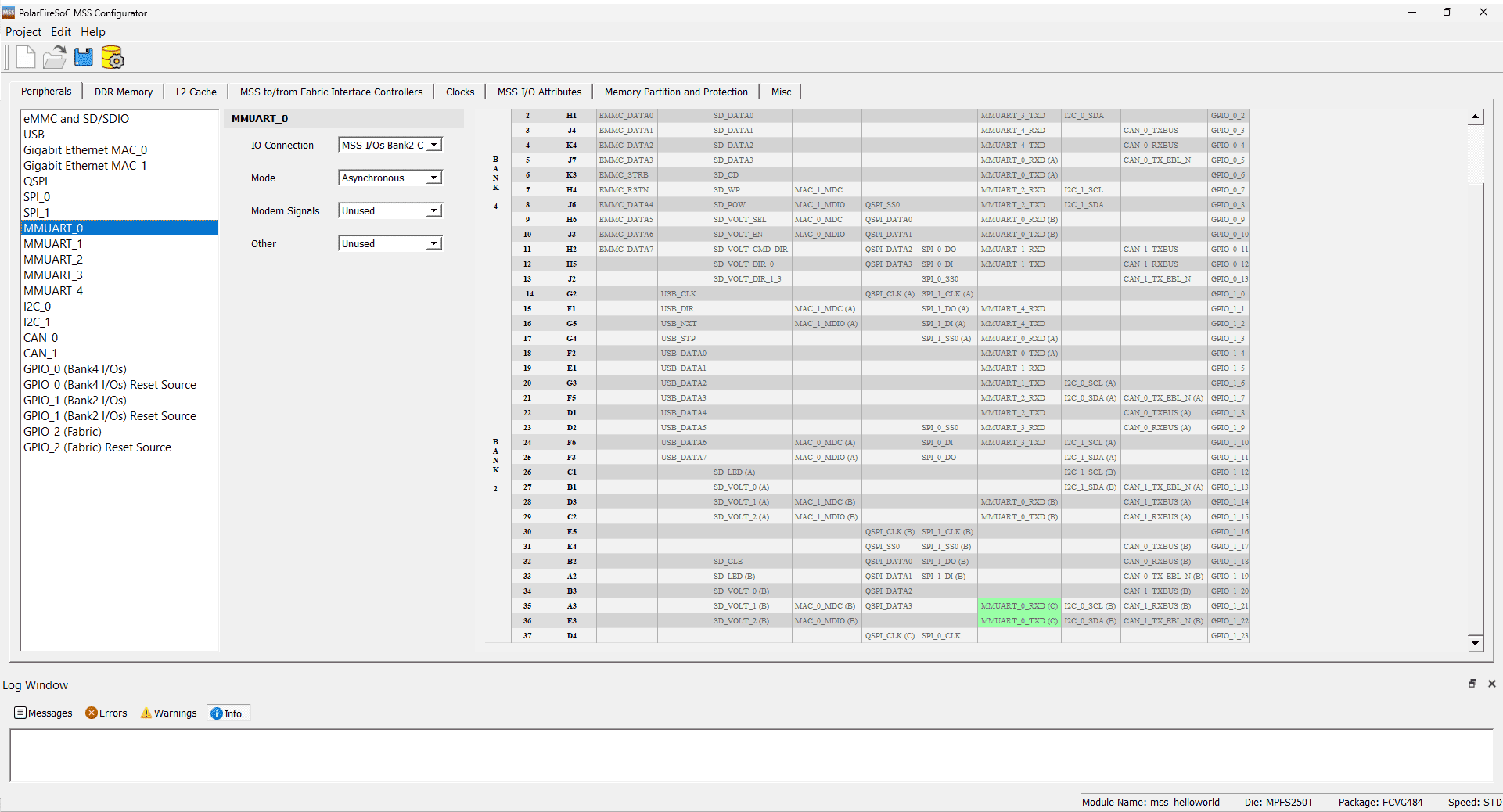 Navigate to the “Peripheral” tab and choose “MMUART_0” Configure its settings according to the provided image below.