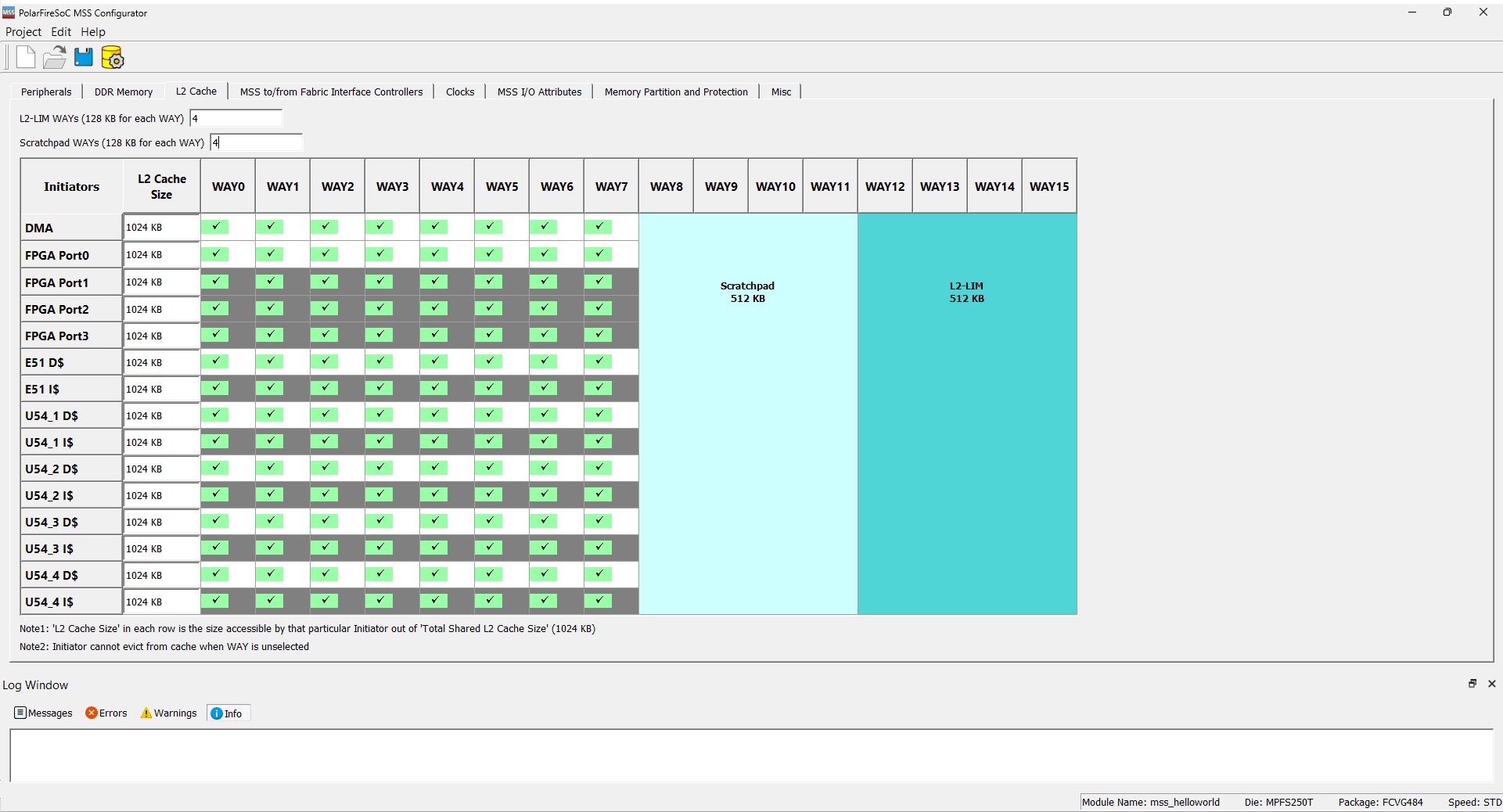 Now, under the “L2 Cache” tab, set L2-LIM WAYs to 4 and Scratchpad WAYs to 4.