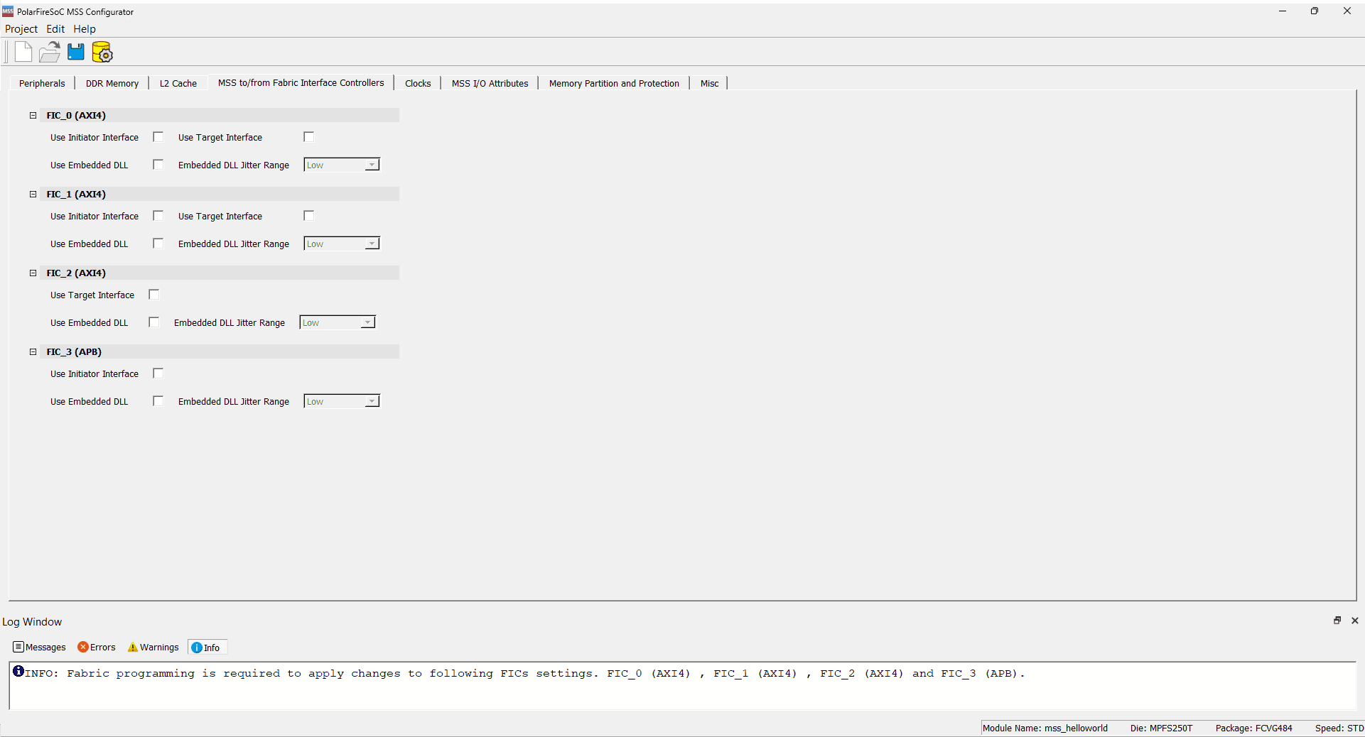 Disable all of the FIC interface under the MSS to/from fabric Interface Controller Tab.