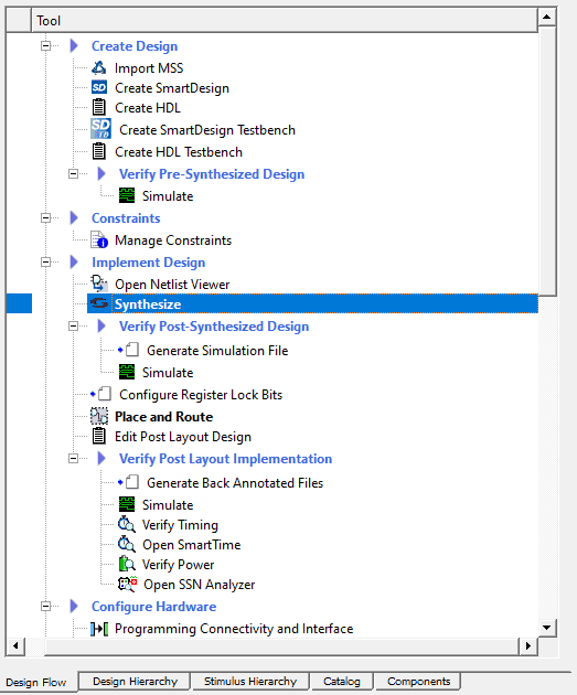In the Design Hierarchy Tab, you’ll find the MSS component. Next, open the SmartDesign and instantiate the MSS component in it.