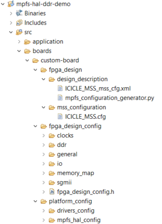As the bare metal project was originally designed for the PolarFire SoC development kit, it’s necessary to replace the board XML file with the new XML file generated using the MSS configurator. To complete this, access the specified path and replace the file. Alternatively, you can create a new folder that consolidates all folders, including “fpga_design,” “fpga_design_config,” and “platform_config.” You can copy these files from the Icicle Kit bare metal project. It’s not essential to include clock, DDR, etc., files inside the “fpga_design_config” folder, as they will be automatically generated once you build the project with your XML file.