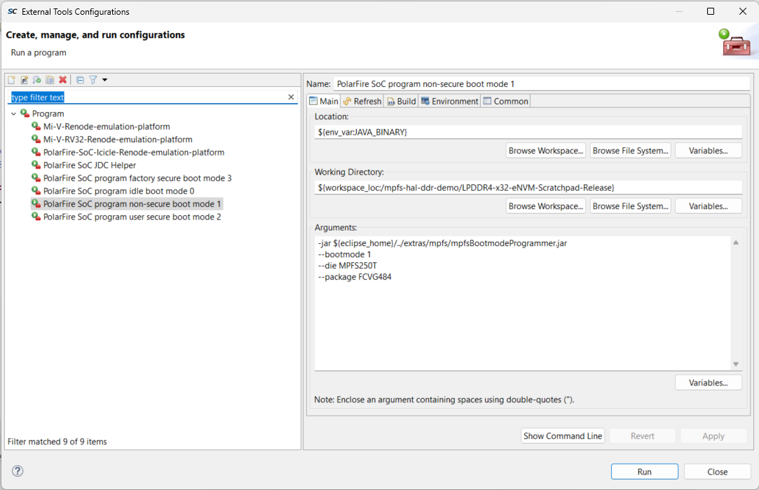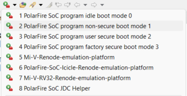 Once the project is built, you can program the board by connecting the FlashPro 5/6 to the board, powering it, and selecting the configuration option as “2 PolarFire SoC program non-secured boot mode 1”