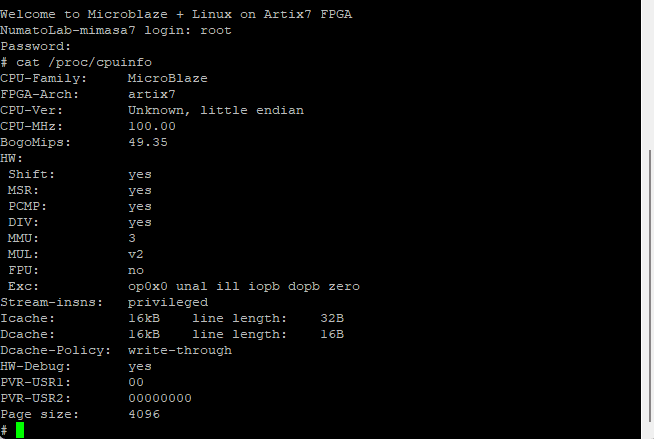 You can login to Linux with username “root” and password as “mimasa7”. Now we have a successfully running Linux kernel in Mimas Artix 7 FPGA Board. Congratulations! In the next article, we will see how to flash kernel image to the onboard SPI Flash on Mimas A7!