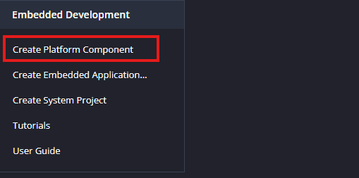 Launch Vitis IDE and create a new platform for the project, by selecting “Create Platform Component”, click “Next”, in the Flow tab select the XSA file saved and finally click “Next” and “Finish” respectively.