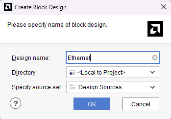 In the Flow Navigator panel, select Create Block Design under IP INTEGRATOR. Enter a name for the block design and click OK. An empty block design will be created.