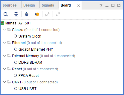 Click the Board tab. The default peripherals available for the Mimas A7 V4.0 board will be displayed.