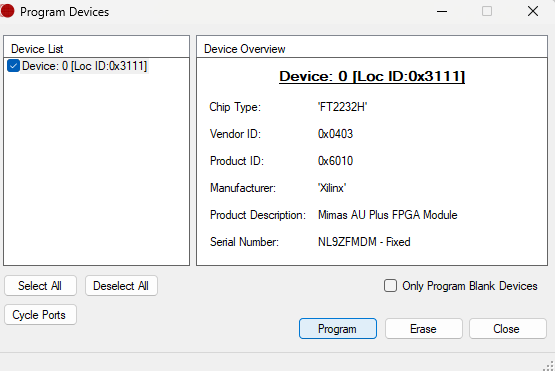 dev = ftd2xx.openEx(b'Mimas AU Plus FPGA Module B', 2)