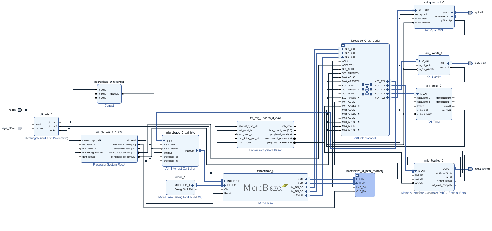 We have already created a block diagram for the previous article, we need to add SPI in the block diagram to be able to use a flash tool, for that open the block diagram in Vivado, click on “add IP” and add “AXI Quad SPI”. Double click on the AXI Quad SPI block and change its settings as shown in the figure. Make sure to check the “Enable STARTUP Primitive” option.