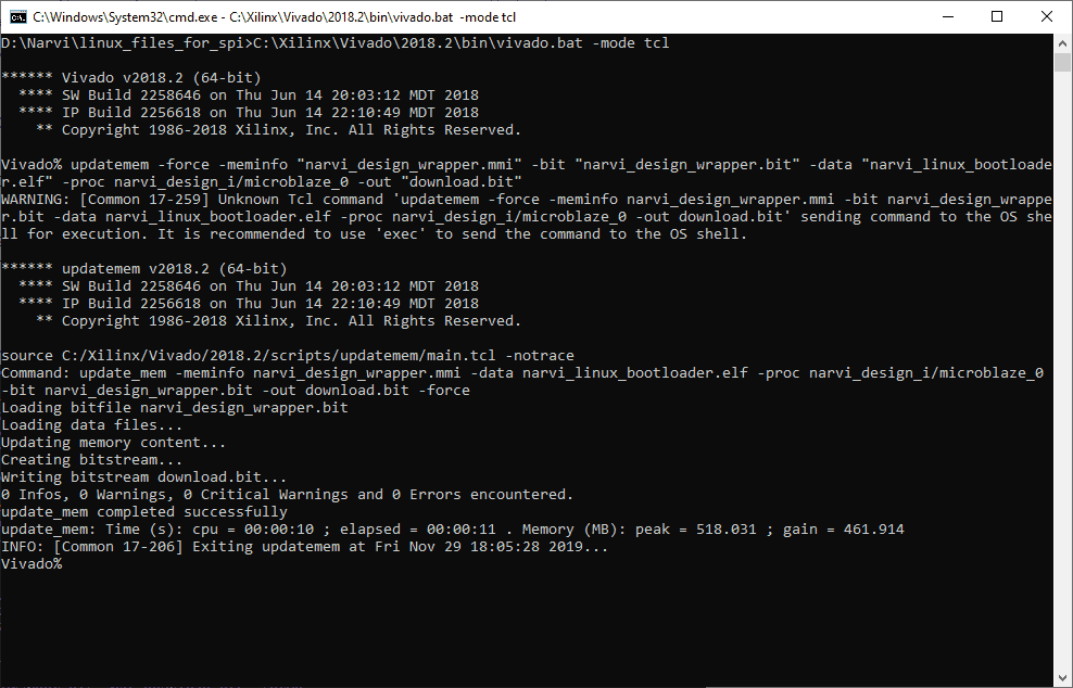 D:\Xilinx\Vivado\2018.2\Vivado\2018.2\bin\vivado.bat -mode tcl updatemem -force -meminfo "narvi_design_wrapper.mmi" -bit "narvi_design_wrapper.bit" -data "narvi_linux_bootloader.elf" -proc narvi_design_i/microblaze_0 -out "download.bit"