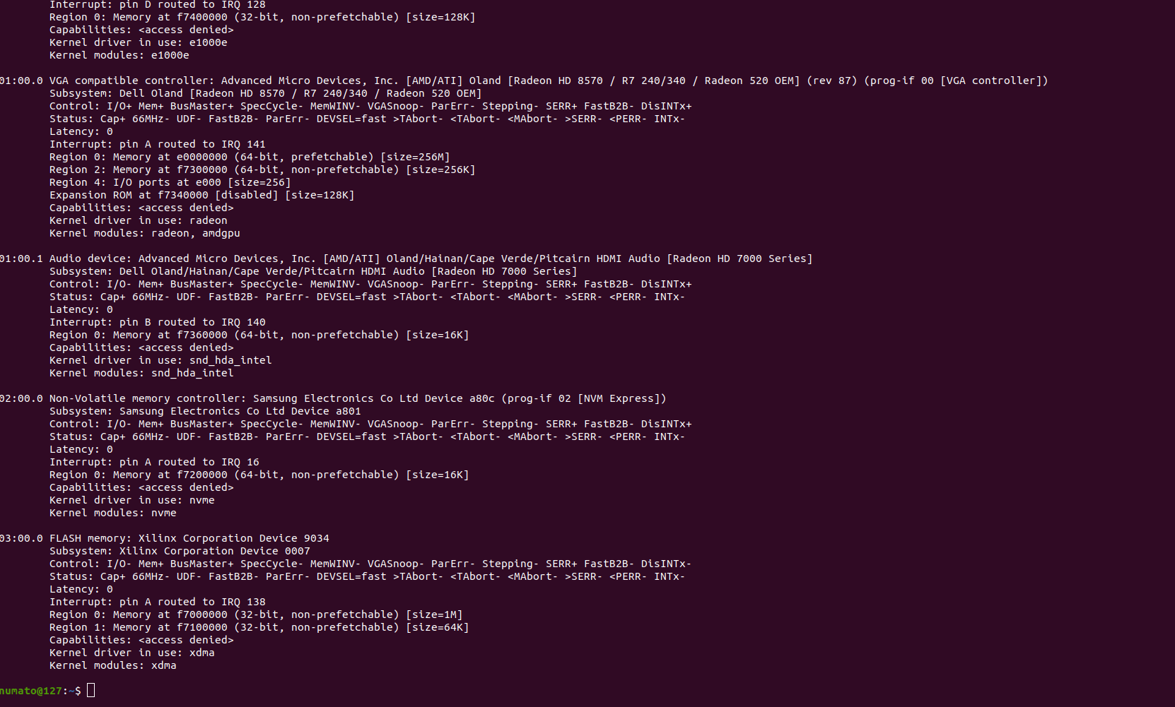 Note: Due to the modification in the PCIe:ID settings, your lspci -vv output will identify the device as a Flash Memory Controller, as mentioned earlier. After detecting the device, continue following the remaining steps in that section exactly as described.
