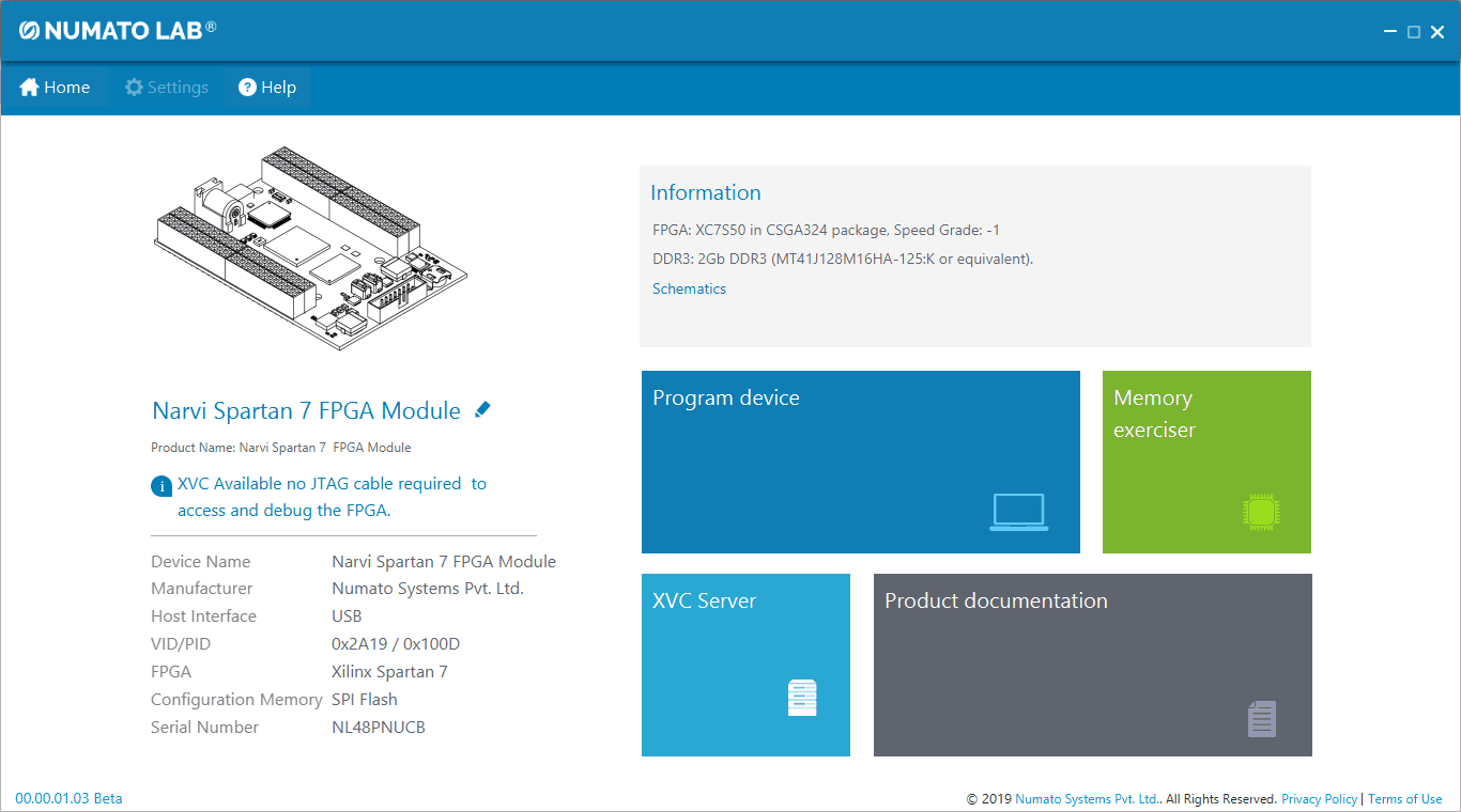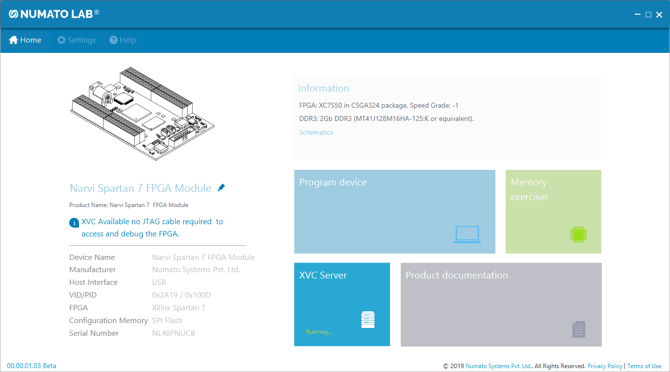 The Narvi Spartan 7 FPGA Development Board features a high-speed Micro USB interface. So, Narvi can be configured using its onboard USB interface using the Numato Lab’s Tenagra application. This Tenagra application has the XVC server feature which uses the XVC server protocol to program the FPGA boards. So programming Narvi through the XVC server is possible using the Tenagra application. In this article, we will show you step by step how to program the Narvi board through the XVC server in Tenagra without the need for a separate external JTAG programmer.