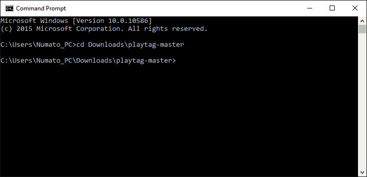 3. Open command prompt and navigate to the folder where you extracted it.Open Command Prompt and Navigate to the extracted playtag folder