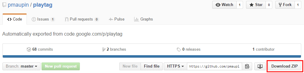 1. Download ‘playtag’ source from https://github.com/pmaupin/playtag repository. [Zip URL]Download Playtag from its github repository