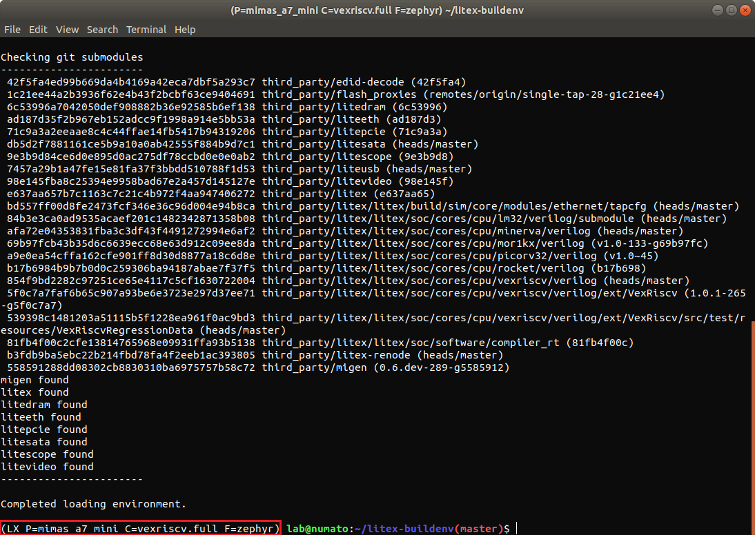 Run the following command to enter the litex-buildenv environment with the previously set variables: