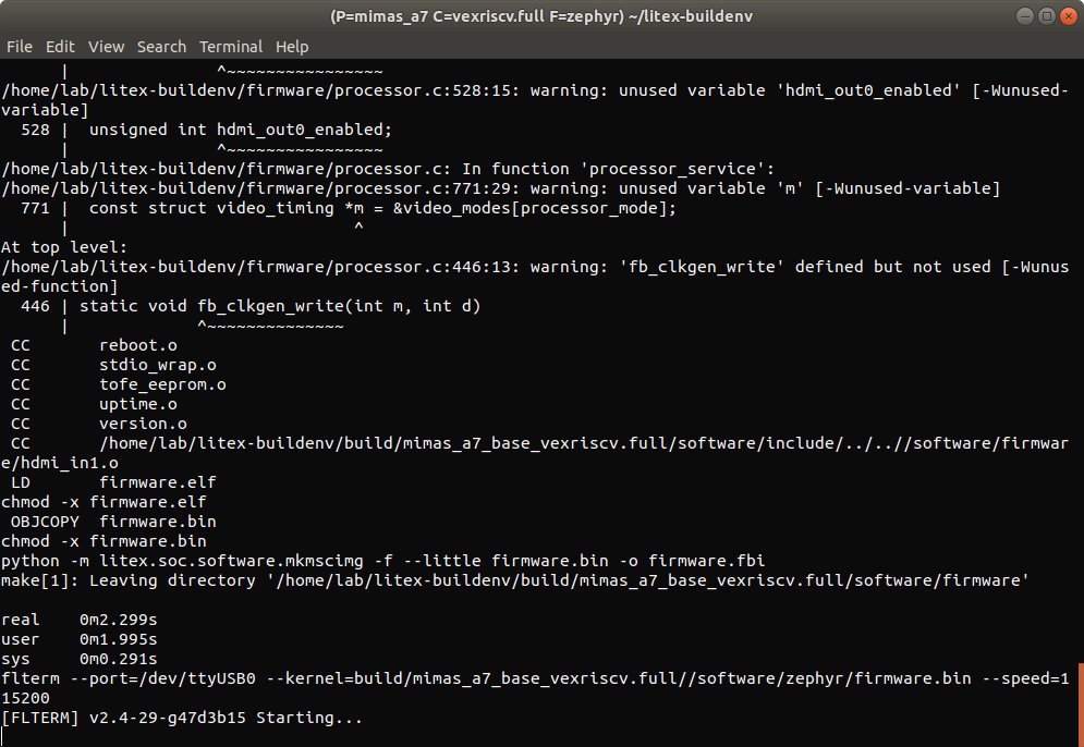 export PLATFORM=mimas_a7 CPU=vexriscv CPU_VARIANT=full TARGET=base FIRMWARE=zephyr