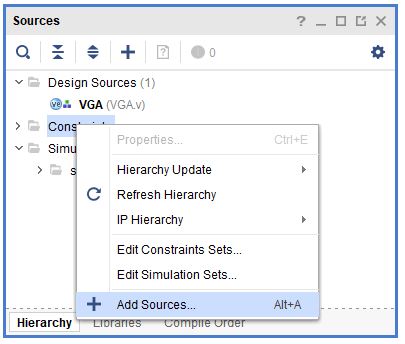 Click Next and Finish to create the project. Then in the Sources tab, Left-click Design Sources and click ‘Add Sources’. It will open a new “Add Sources” window.