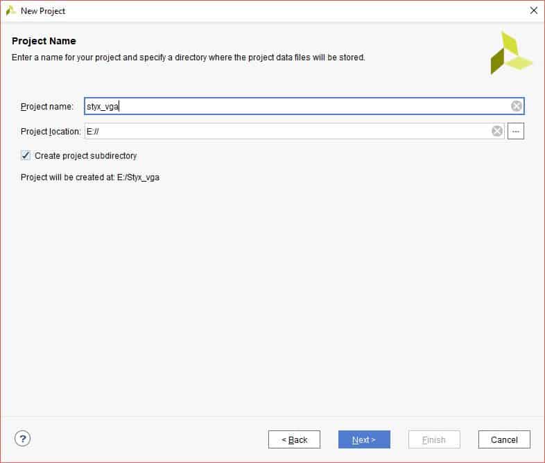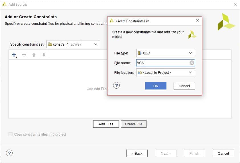 Click ‘Create File’ and give ‘VGA’ as File name. Click ‘OK’ and ‘Finish’.
