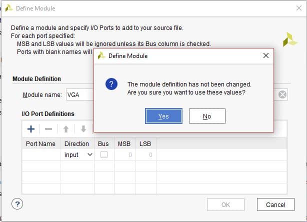 In the ‘Define Module’ window, Click ‘OK’ followed by ‘Yes’ without making any changes.