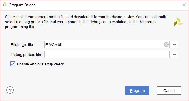 Click Program and observe the output. Connect a VGA cable to VGA Module and to the monitor where you want to see the output.