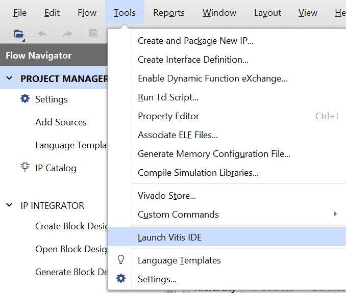 Finally open Vitis unified IDE by following the steps Tools–> Launch Vitis IDE .