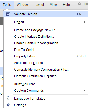 Select the “Validate Design” option from the Tools menu to ensure that the connections are correct and save the design.