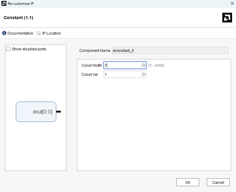 Press the “Add IP” icon and search for Constant block as shown in the image below. Drag and drop it to the Diagram window.