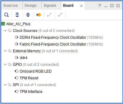 Click the Board tab. The default peripherals available for the Aller _AU_Plus board will be displayed.
