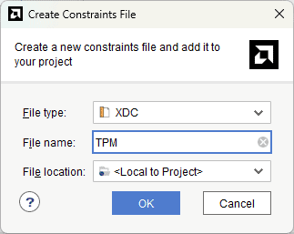 In the window that follows, select “Add or create constraints” and click “Next”. On the following page, select “Create File” and give an appropriate name to the constraints file, as shown below. Click “Finish”.