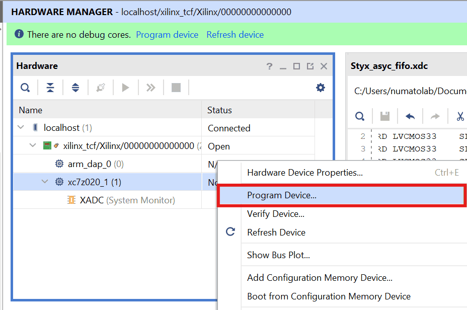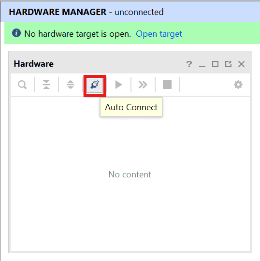Click on “Open Hardware Manager” and then select “auto connect”.