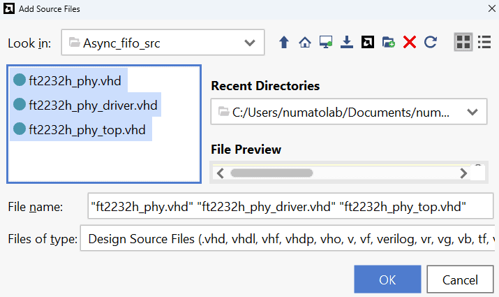 Download and extract the RTL source files from here. Click ‘Add Files’, select all files and add them to the project.