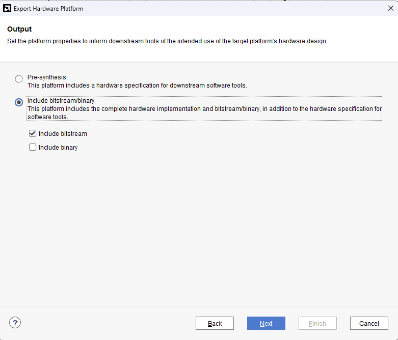 Select the “include bitstream” checkbox and click Next.